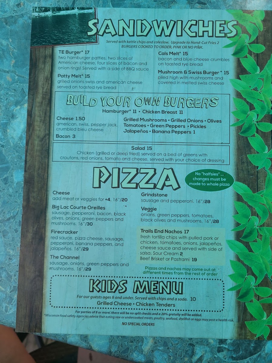 The menu at Trails End is designed for everyone, from families enjoying kid-friendly activities to groups celebrating special occasions. Immerse yourself in a vibrant atmosphere enriched by live music events, making every visit feel like a celebration. Whether you're partaking in a golf gathering or an intimate dinner, the mix of flavorful dishes and the picturesque setting makes Trails End Hayward a must-visit. Experience great food, friendly service, and the charm of the Northwoods.
